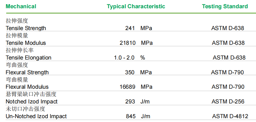 أظهرت مادة PA12-LCF40 المزايا الرئيسية التالية: